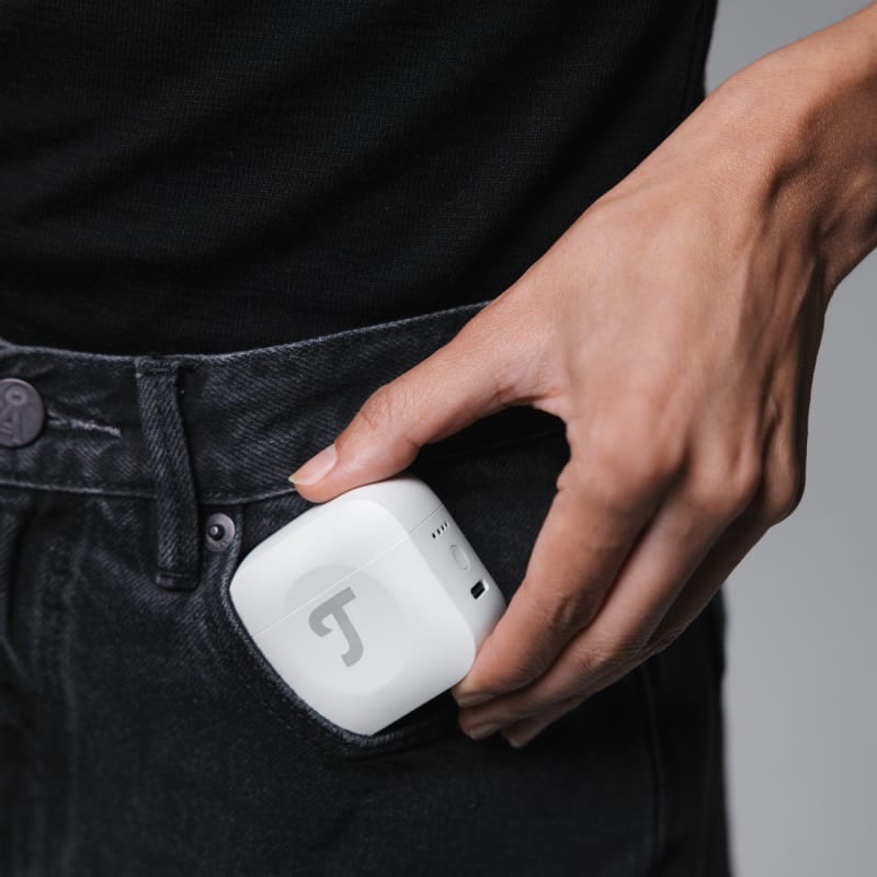 De ruisonderdrukking kun je naar wens omzetten in versterking van het omgevingsgeluid. In de transparantiemodus vangt de AIRY TWS PRO het omgevingsgeluid op om het in versterkte vorm door te geven. Op die manier kun je alles om je heen duidelijk horen zonder de oortjes uit je oren te verwijderen. Dat komt goed van pas als je wilt weten wat er op het station of in de luchthaven wordt omgeroepen. De ruisonderdrukking en transparantiemodus kun je via de app of direct vanaf de oortjes bedienen.