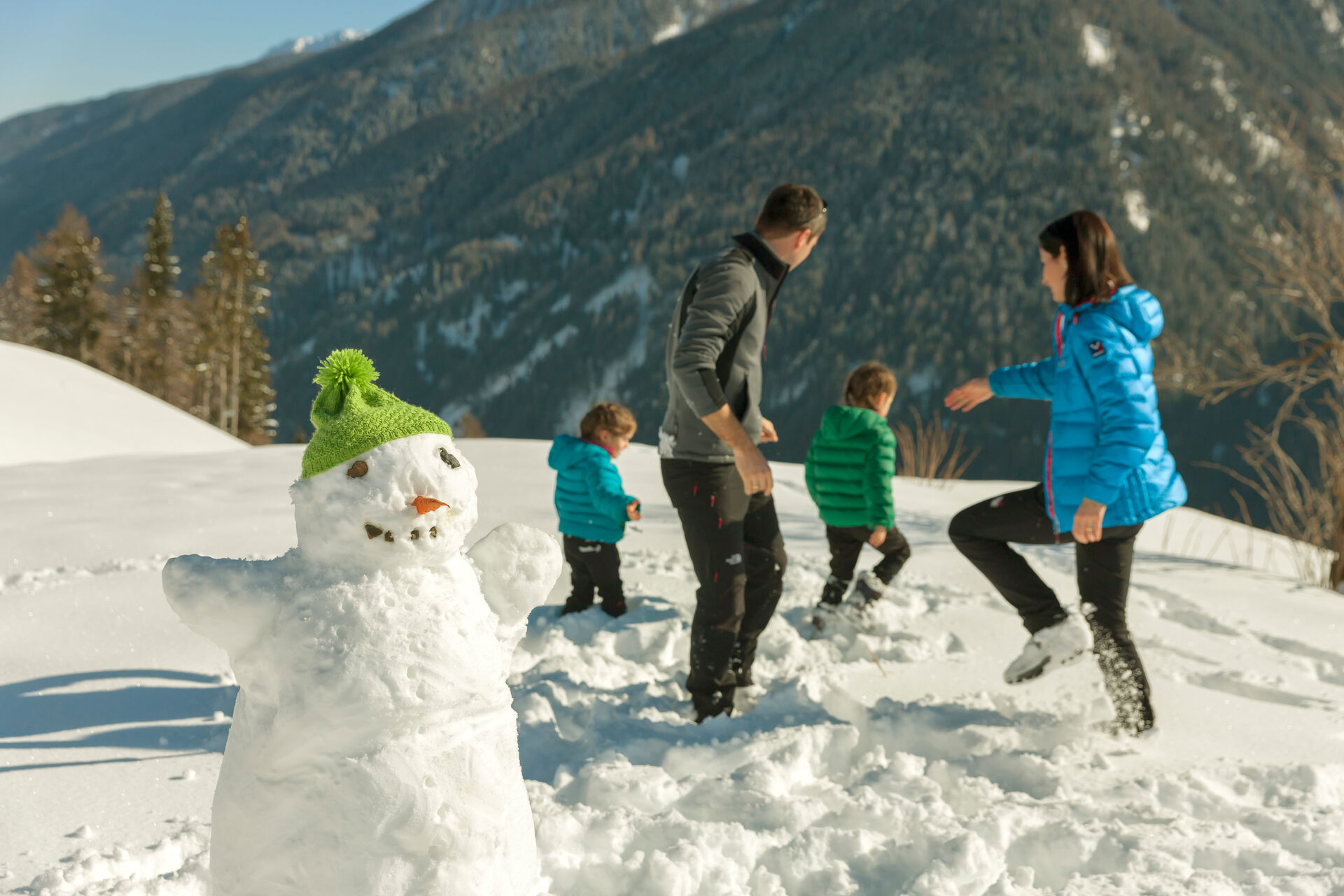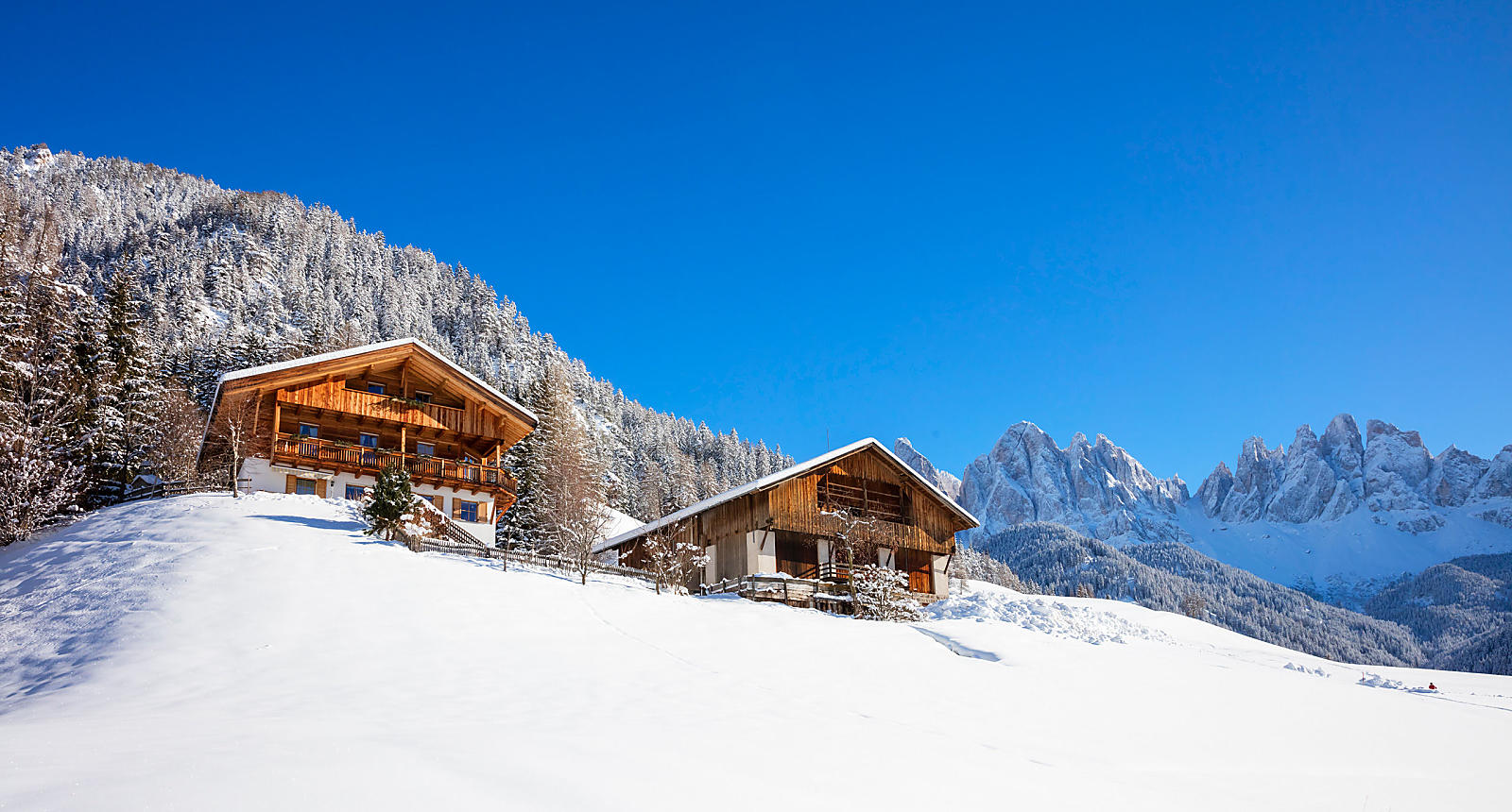 Roter Hahn-boerderijen liggen verspreid over heel Zuid-Tirol, met locaties in zonnige dalen tot op besneeuwde bergflanken. De winter nodigt uit tot avontuur: sneeuwschoenwandelen door stille bossen, langlaufen over glinsterende loipes of rodelen met het gezin.